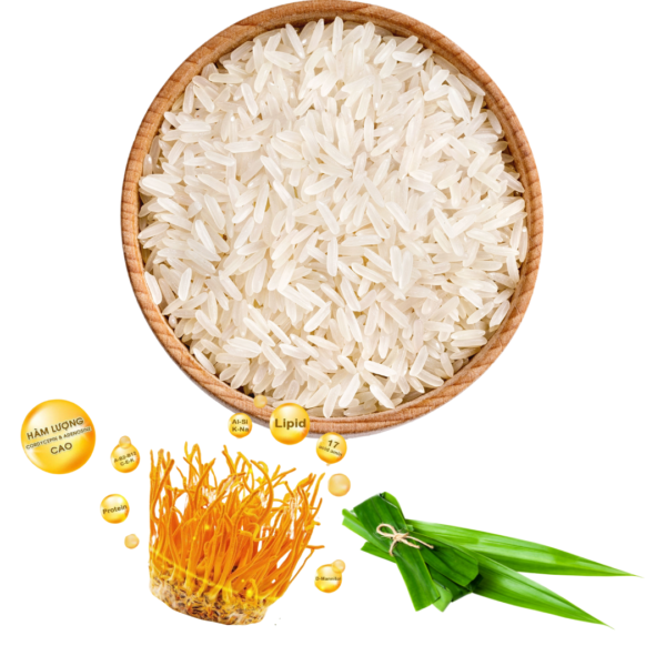 Thành phần: 100% gạo nguyên chất kết hợp đông trùng hạ thảo và tinh chất lá dứa, không chứa chất bảo quản hay phụ gia.