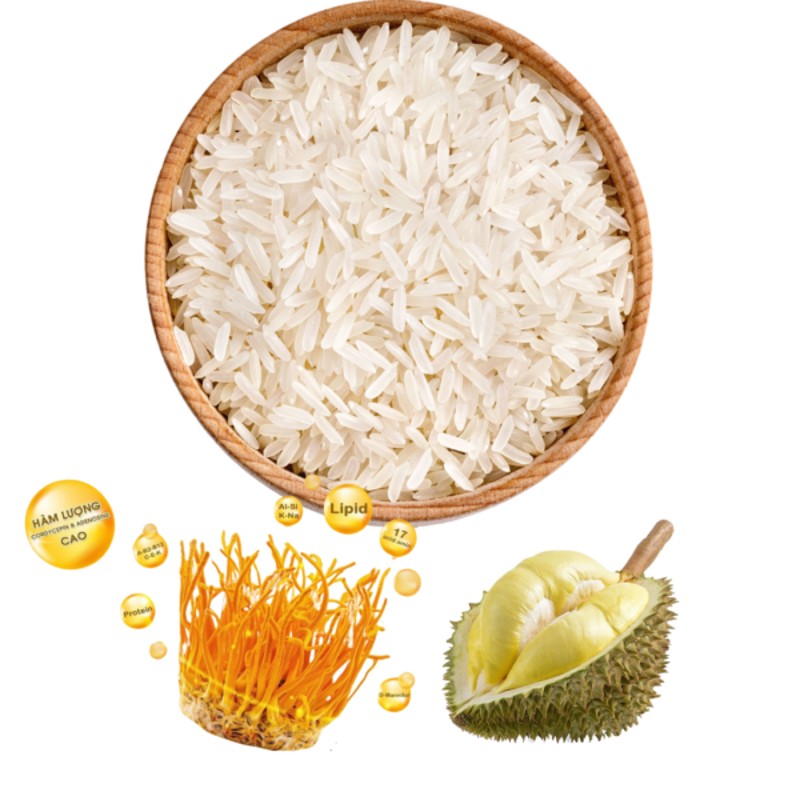 Thành phần: 100% gạo nguyên chất kết hợp đông trùng hạ thảo và hương sầu riêng tự nhiên, không chứa chất bảo quản hay hóa chất độc hại.